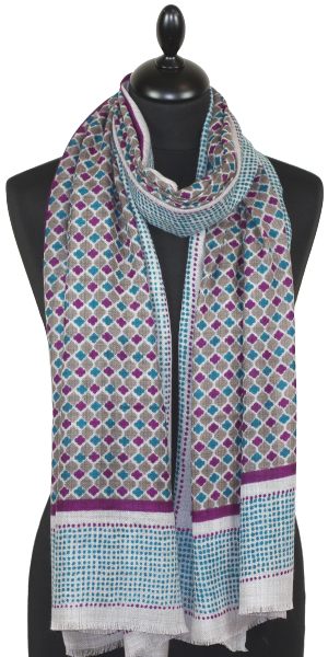 Écharpe Cachemire Beige-Turquoise-Violet (Code: ECM43) |