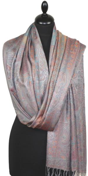 Étole en Modal/Soie Gris-Orange-Bleu (Code: EMS25) |