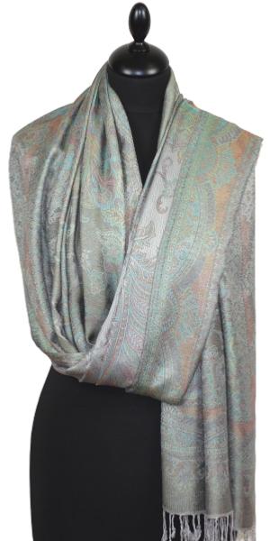 Étole en Modal/Soie Vert-Rouge-Corail (Code: EMS03) |