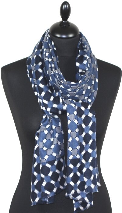 The patterns on this piece have been hand-printed using traditional Indian stencils and presses. This method allows for repeated designs while preserving the unique charm of each scarf.