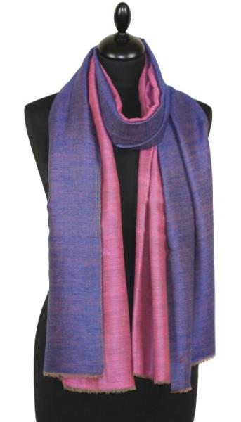 Ce châle pashmina bicolore bleu et rose vous enveloppe d'une douceur incomparable, d'une légèreté extrême et, surtout, d'une chaleur agréable et réconfortante. La laine provient des chèvres semi-nomades des hauts plateaux de l'Himalaya, dans des conditions climatiques extrêmes qui façonnent la qualité exceptionnelle de cette matière précieuse. Ce pashmina devient beaucoup plus doux à l'usage, offrant une sensation encore plus agréable au fil du temps.