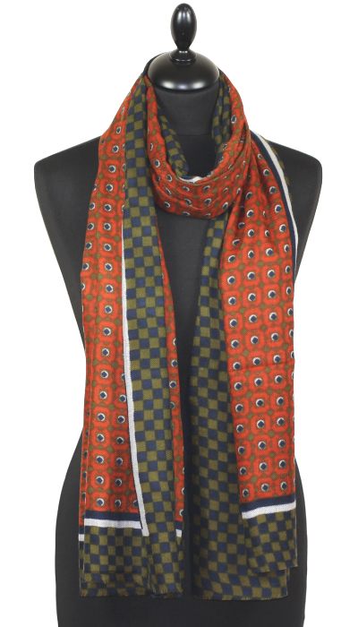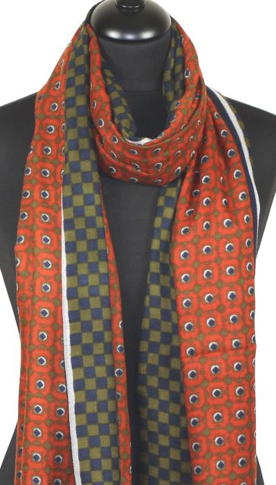 Écharpe en cachemire brique, vert et marine – alliance de douceur, chaleur et savoir-faire artisanal