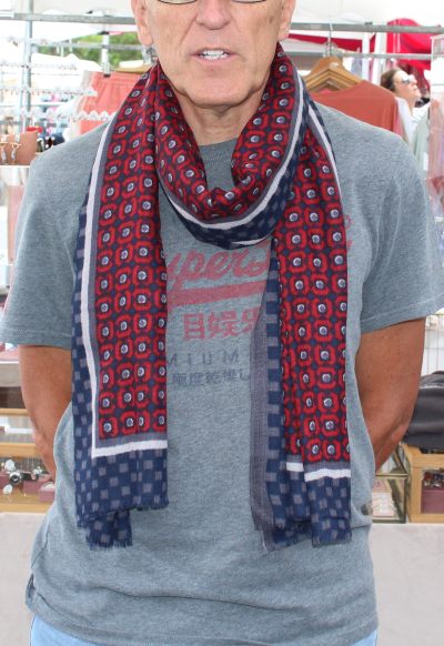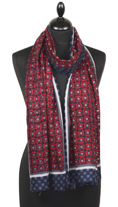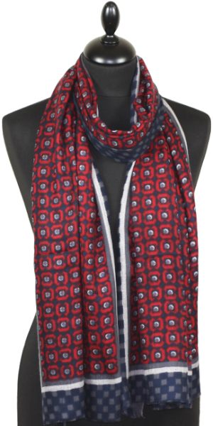Écharpe en cachemire rouge, gris et marine – alliance de douceur, chaleur et savoir-faire artisanal