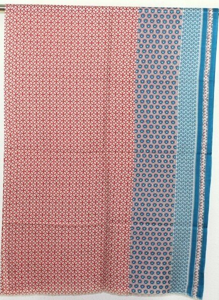 Les motifs de cette pièce ont été imprimés artisanalement à l’aide de pochoirs et de presses traditionnelles indiennes. Cette méthode permet de reproduire les dessins de manière répétée, tout en apportant un charme unique à chaque pièce.