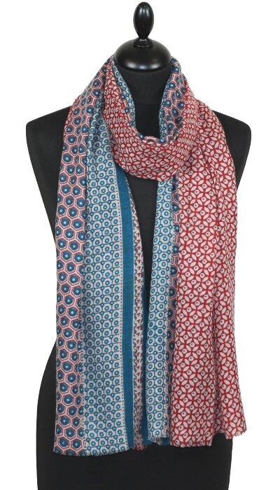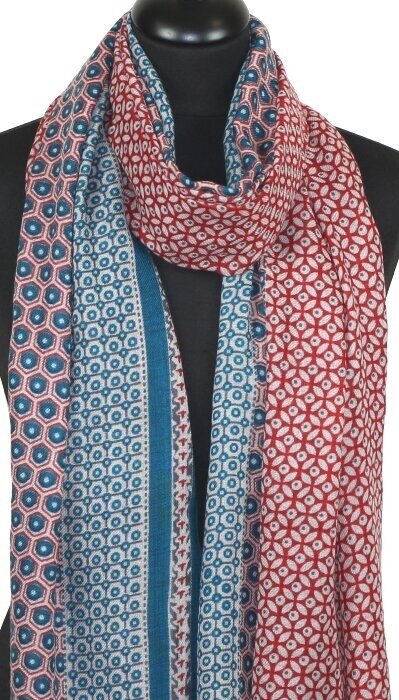 Écharpe en cachemire jean, rouge et marine – alliance de douceur, chaleur et savoir-faire artisanal