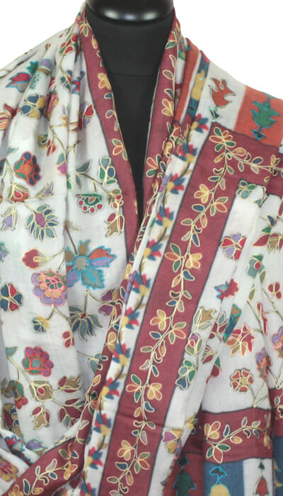 Étole en cachemire blanc cassé à motifs floraux brodée – L’élégance raffinée d’un savoir-faire traditionnel