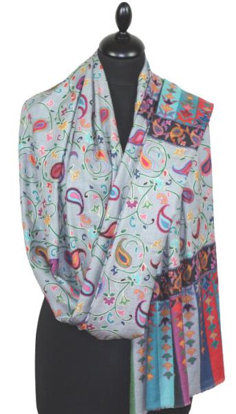 Étole en cachemire gris à motifs floraux brodée – L’élégance raffinée d’un savoir-faire traditionnel