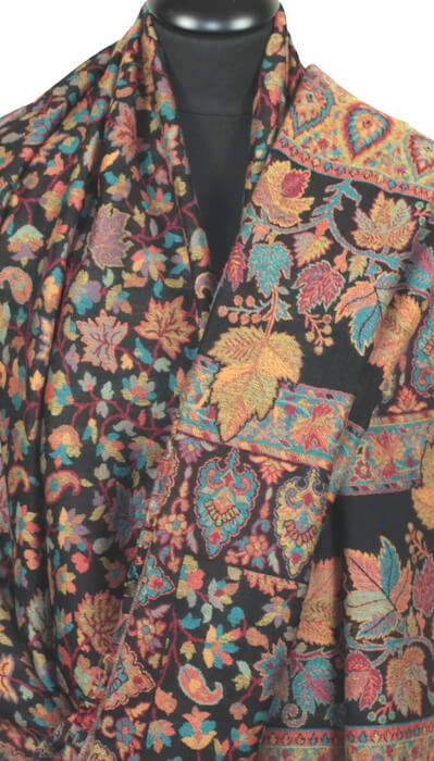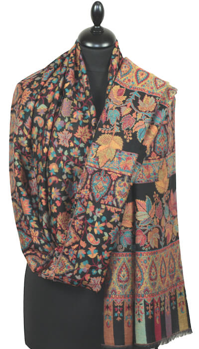 Étole en cachemire noir floral de style kani – Le prestige unique d’un savoir-faire traditionnel