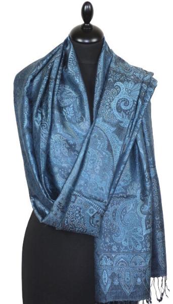 Cette étole en soie, aux subtiles nuances de bleu, gris et marine, est idéale pour toutes les saisons grâce à ses propriétés thermorégulatrices naturelles. Elle offre un confort exceptionnel en toute occasion, qu'il s'agisse de journées estivales ou de soirées hivernales, en enveloppant votre corps de chaleur et de douceur, même lors des moments les plus frais.