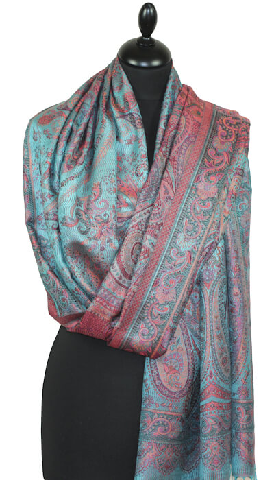 Cette étole en soie, aux subtiles nuances de turquoise, fuchsia et orange, est idéale pour toutes les saisons grâce à ses propriétés thermorégulatrices naturelles. Elle offre un confort exceptionnel en toute occasion, qu'il s'agisse de journées estivales ou de soirées hivernales, en enveloppant votre corps de chaleur et de douceur, même lors des moments les plus frais.
