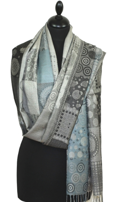 Silk Scarf in Grey, Blue and Black – Timeless Indian Craftsmanship, Natural Softness and Lightness
