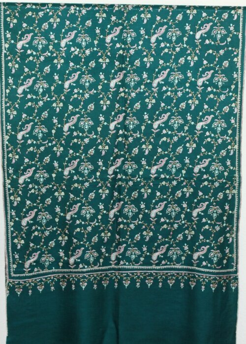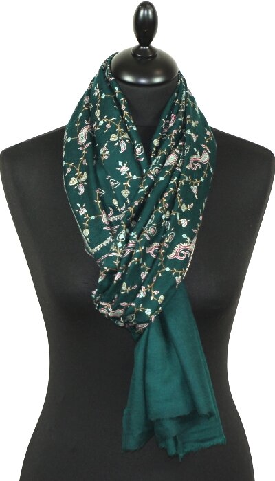 Imperial Green Hand-Embroidered Cashmere Pashmina – A True Work of Art by Kashmiri Artisans