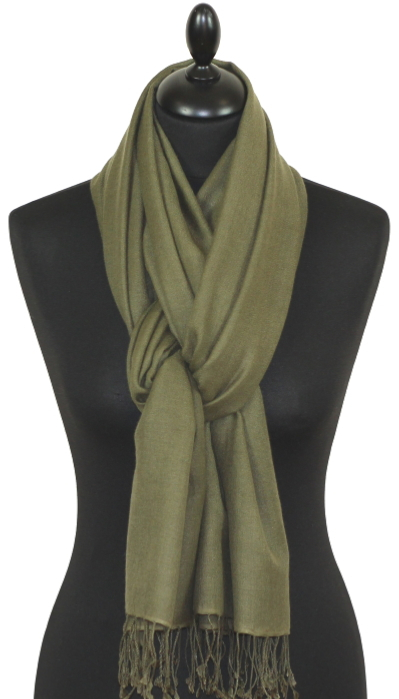 Versatile and elegant, this khaki cashmere scarf suits both women and men, offering refined style for any occasion.