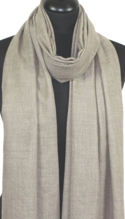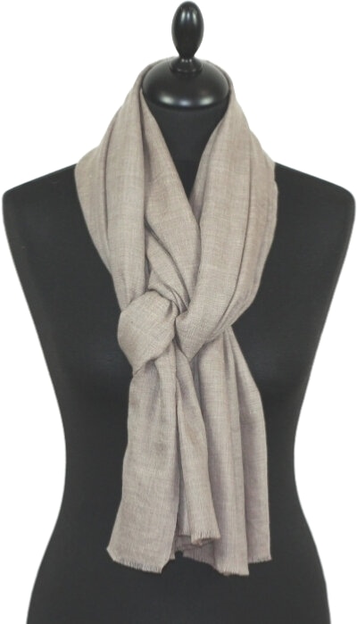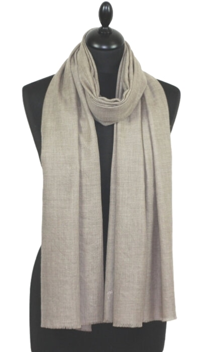 Pashmina Beige-Gris Naturel en Cachemire - Véritable Pashmina Fait Entièrement à la Main dans les Hauts Plateaux de l'Himalaya