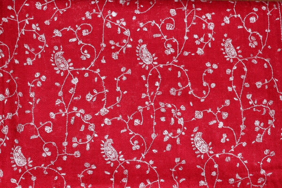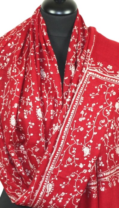 Pashmina Rouge Impérial Brodé à la Main en Cachemire – Véritable Œuvre d’Art des Artisans du Cachemire