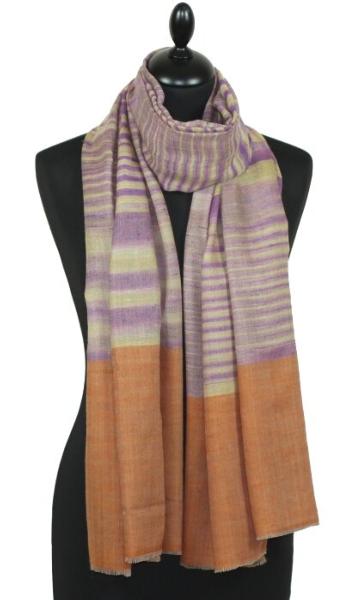 Pashmina Lilas & Champagne & Orange en Cachemire - Véritable Pashmina Fait Entièrement à la Main dans les Hauts Plateaux de l'Himalaya