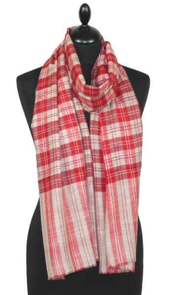 Pashmina Rouge & Écru en Cachemire - Véritable Pashmina Fait Entièrement à la Main dans les Hauts Plateaux de l'Himalaya