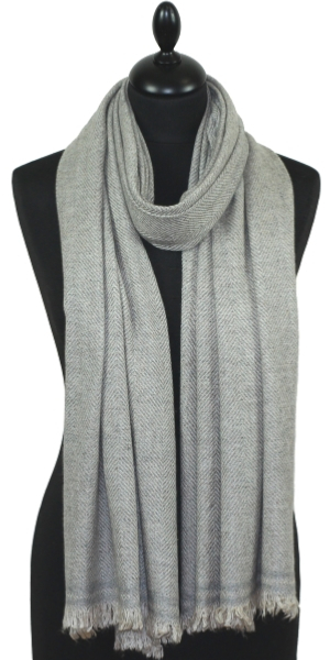 This large cashmere and wool shawl features a natural slate grey chevron pattern and is perfect for staying warm throughout the year. Its soft and plush texture offers comfort and elegance—ideal for chilly days, winter evenings, or special occasions.