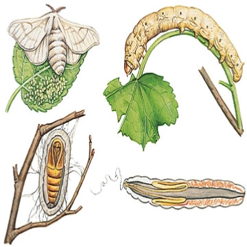 On parle souvent de “soie du mûrier” (ou “soie de mûrier”) car le ver à soie Bombyx mori est nourri de feuilles de mûrier blanc : la soie provient du cocon du ver, pas de l’arbre.
