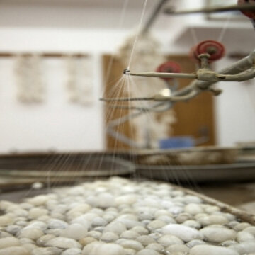 Pour récolter la soie, les cocons sont plongés dans de l’eau chaude afin d’assouplir la colle naturelle (séricine) et permettre le dévidage du fil le plus régulièrement possible, sans le casser.